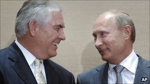 Putin afirmou que a Rússia ganha acesso ilimitado a petrolífera americana e as reservas de gás no Texas e no Golfo do México"novos horizontes" foram abertos, enquanto porta-voz da Exxon Mobil Alan Jeffers, disse à BBC: "OÁrtico russo está entre os mais promissores e menos exploradas regiões de petróleo, é por isso que estamos muito interessados. "